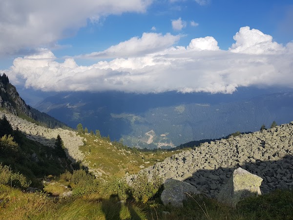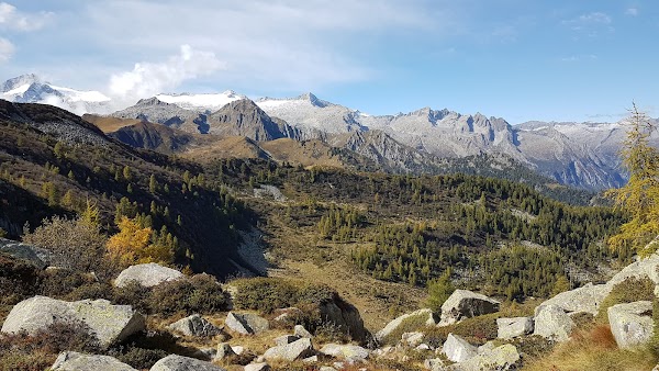 A mountain pass in the Strembo area, a crossing point for hikers among the valleys of the Adamello-Presanella massif, offering views of surrounding peaks and remnant glaciers.