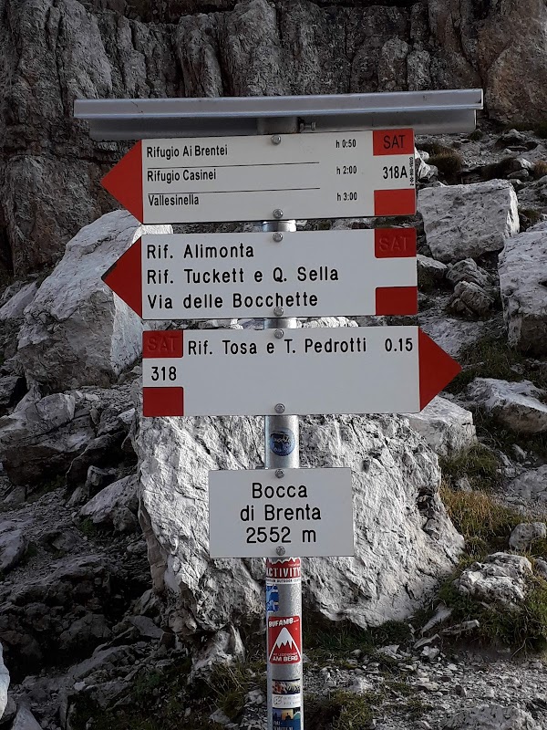 Celebre passo alpino a 2552 m nel cuore delle Dolomiti di Brenta, punto chiave delle vie ferrate storiche. Offre panorami spettacolari sulle guglie dolomitiche e rappresenta una tappa iconica dell'alpinismo trentino.