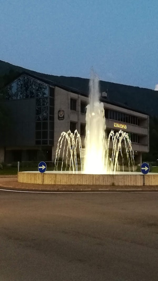 Rotonda con fontana di Piazza dell’Unione dei Comuni, Comano Terme, लगभग 395 मीटर की ऊंचाई पर में Val Rendena घाटी का एक दर्शनीय स्थल है। पश्चिमी ट्रेंटिनो की यह मनोरम घाटी यूनेस्को विश्व धरोहर ब्रेंटा डोलोमाइट्स और इतालवी आल्प्स के सबसे बड़े हिमनद वाले अडामेलो-प्रेसानेला पर्वत श्रृंखला के बीच फैली है।